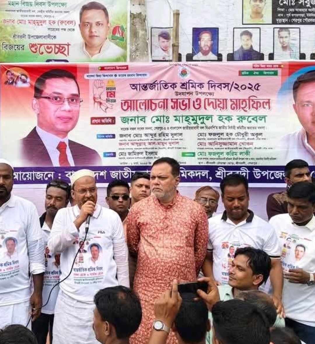 শেরপুর জেলা শ্রীবরদী উপজেলা আন্তর্জাতিক মহান মে দিবস পালন করেছেন বিভিন্ন শ্রমিক সংগঠনের নেতাকর্মী বৃন্দ। আজ দুপুরে বাস - মিনিবাস শ্রমিক ইউনিয়ন, ট্রাক ট্র্যাক , অটোরিকশা চালক, সিএনজি চালক,এর আয়োজনে দিবসটির যথাযোগ্য মর্যাদায় পালিত হয়েছে। একটি বর্ণাঢ্য র্ব্যালি নিয়ে প্রধান প্রধান সড়ক প্রদক্ষিন শেষে সংক্ষিপ্ত আলোচনা শ্রীবরদী উপজেলা বিএনপির সভাপতি আব্দুর রহিম দোলার , উপজেলা বিএনপির সাধারণ সম্পাদকসহ আব্দুল্লাহ আল মামুন দোলার পৌর বিএনপির সভাপতি সভাপতি উকোল চৌধুরীর সহ বিএনপির উপজেলা বিভিন্ন অঙ্গ সংগঠনের সভাপতি ও সাধারণ সম্পাদক এবং সকল নেতাকর্মীর ও সাধারণ মানুষের প্রধান অতিথি হিসেবে উপস্থিত ছিলেন শ্রীবরদী ও ঝিনাইগাতী উপজেলা বিএনপির গণমানুষের নেতা জনাব মোঃ মাহমুদুল হক রুবেল সাহেব বক্তব্য তিনি শ্রমিক দের নিয়ে কাজ করার কথা বলেন নিহত শ্রমিকদের জন্য দুয়া করবেন শ্রমিকদের বেতন কাঠামো নিয়ে কথা বলেন।