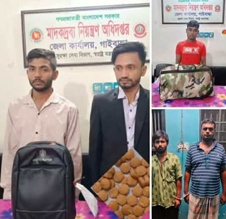 গাইবান্ধার পলাশবাড়ীতে মাদকদ্রব্য নিয়ন্ত্রণ অধিদপ্তরের পৃথক অভিযানে ১ হাজার ৫৫৫ পিস অ্যামফিটামিনযুক্ত ইয়াবা ট্যাবলেটসহ পাঁচজনকে গ্রেফতার করেছে সংস্থাটি। আটক ব্যক্তিদের কাছ থেকে মোট ১৫৫ গ্রাম ইয়াবা উদ্ধার করা হয়েছে, যার বাজারমূল্য আনুমানিক ৪ লাখ ৩৫ হাজার টাকা
