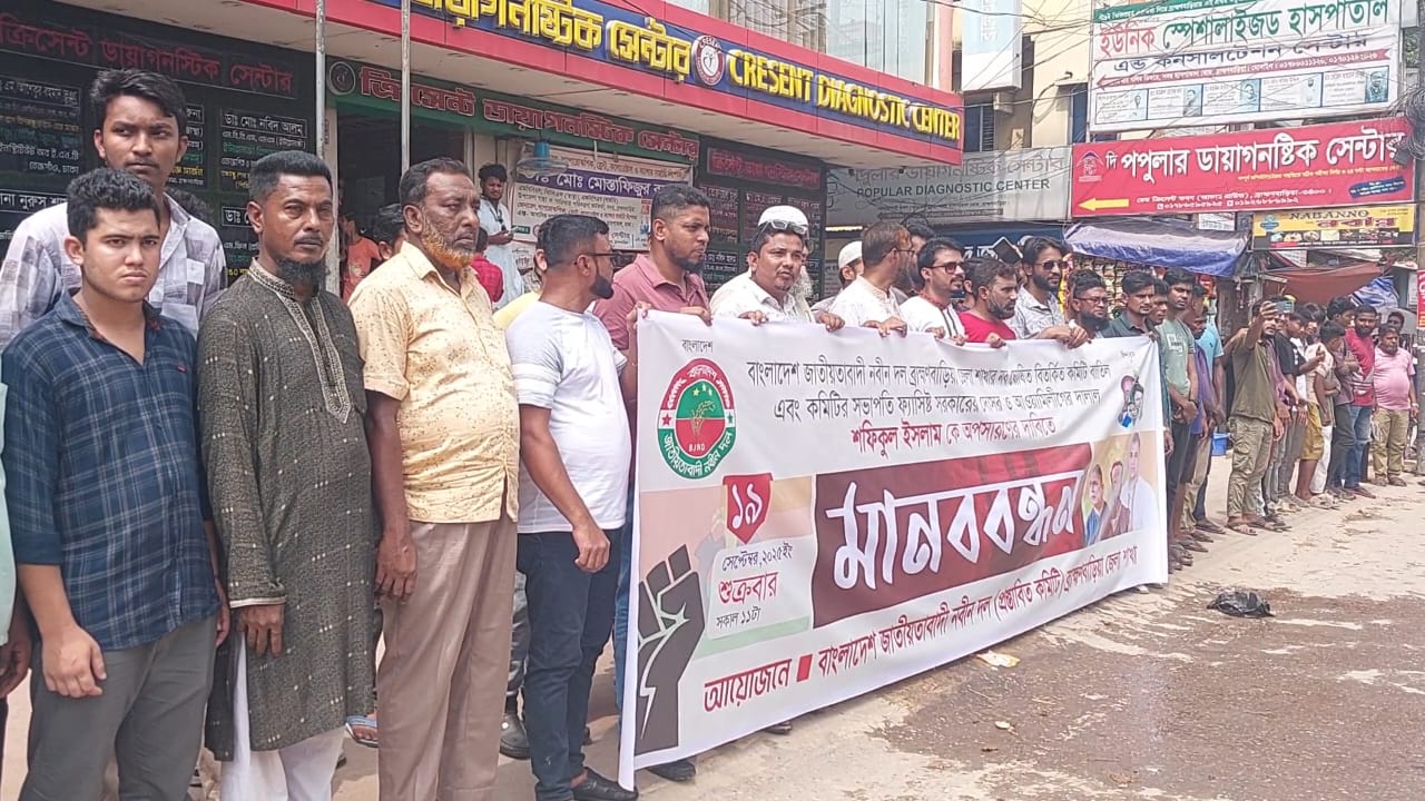 শুক্রবার, ১৯ সেপ্টেম্বর বেলা সাড়ে ১১টার দিকে ব্রাহ্মণবাড়িয়া প্রেসক্লাবের সামনে জাতীয়তাবাদী নবীন দল জেলা শাখার প্রস্তাবিত কমিটির উদ্যোগে মানববন্ধন অনুষ্ঠিত হয়। মানববন্ধন চলাকালে প্রস্তাবিত জেলা নবীনদলের সভাপতি আমানুল্লাহ আমানের সভাপতিত্বে বক্তব্য রাখেন সংগঠনের পূর্বঘোষিত কমিটির সাধারণ সম্পাদক শাহজাহান চকদার, সিনিয়র যুগ্ম সম্পাদক বিল্লাল খন্দকার, সাংগঠনিক সম্পাদক মামুন খন্দকার, সদর উপজেলা সিনিয়র সম্পাদক আতিকুল ইসলাম খোকন, নাসিরনগর উপজেলা সিনিয়র সহ-সভাপতি গাজী মিয়া, কাজী সোহেল প্রমুখ। এ সময় ঘোষিত কমিটির সভাপতি শফিকুল ইসলামকে ফ্যাসিস্ট সরকারের দোসর হিসেবে আখ্যায়িত করা হয়।