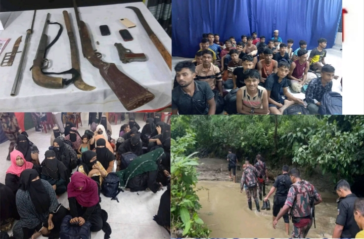 গত ২০ সেপ্টেম্বর ২০২৫ তারিখ সন্ধ্যা ১৮০০ ঘটিকা থেকে ২১ সেপ্টেম্বর ২০২৫ তারিখ রাত ২০০০ ঘটিকা পর্যন্ত টানা ২৬ ঘন্টা টেকনাফ উপজেলার কচ্ছপিয়া, বড়ডিল এবং রাজারছড়া করাচি গোরামারা পাহাড় এলাকায় বিজিবি-৯, র্যাব-১৫ এবং সিপিসি-১ এর যৌথ দল অভিযান পরিচালনা করে। এ সময় তারা অস্ত্রসহ তিনজন মানব পাচারকারীকে গ্রেফতার করতে সক্ষম হয়। আটককৃতদের কাছ থেকে উদ্ধার করা হয়েছে ২টি দেশীয় বন্দুক, একটি বিদেশী পিস্তল এবং ৩ রাউন্ড অ্যামুনিশন।