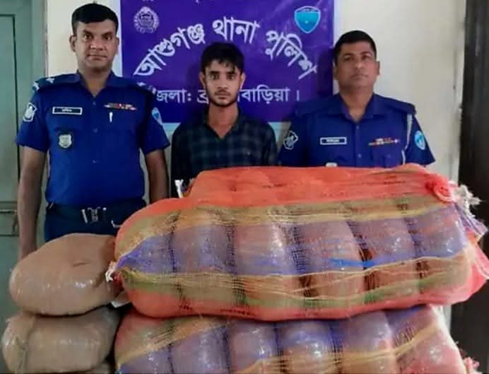 ব্রাহ্মণবাড়িয়ার আশুগঞ্জে টোলপ্লাজায় ৮৭ কেজি গাঁজাসহ আশরাফুল (২১) নামে এক মাদক কারবারিকে আটক করেছে পুলিশ।