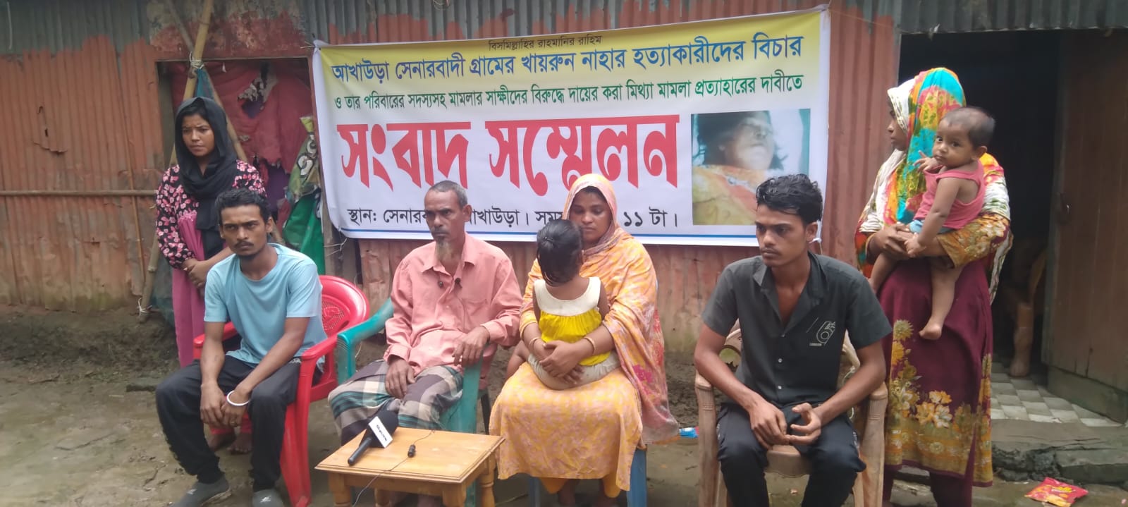 খায়রুন বেগমের মেয়ে তানিয়া আক্তার সংবাদ সম্মেলনে কথা বলতে গিয়ে কান্নায় ভেঙেঙ্গ পড়েন। তিনি বলেন, ‘আমার মায়ের হত্যাকারিদের ফাঁসি চাই। কিন্তু এখন আমরা নিজেরাই শঙ্কার মধ্যে আছি। থানায় একটি ও আদালতে দু’টি মামলা দেওয়া হয়েছে। ওরা খুব প্রভাবশালী। যেকোনো সময় আমাদের অনেক ক্ষতি করে ফেলতে পারে।’