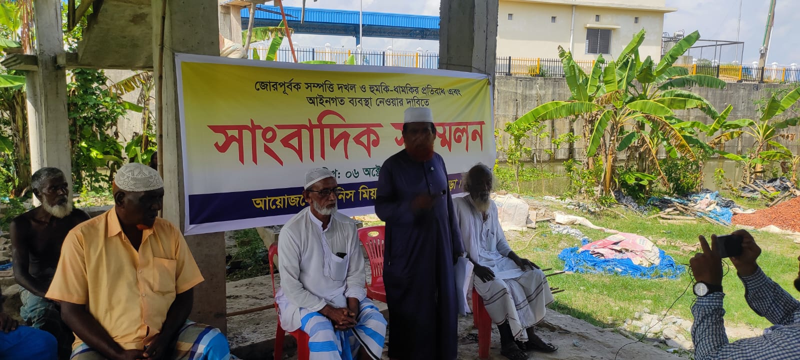 সংবাদ সম্মেলনে বক্তব্যে দানিজ মিয়া অভিযোগ করেন, একই গ্রামের মো. হারিজ মোল্লা , মো. জাহাঙ্গীর মোল্লা ও মো. বাবু মোল্লা নামের তিনজন দীর্ঘদিন ধরে তার মালিকানাধীন ও ভোগদখলীয় জমি জবরদখলের চেষ্টা করে আসছেন।
