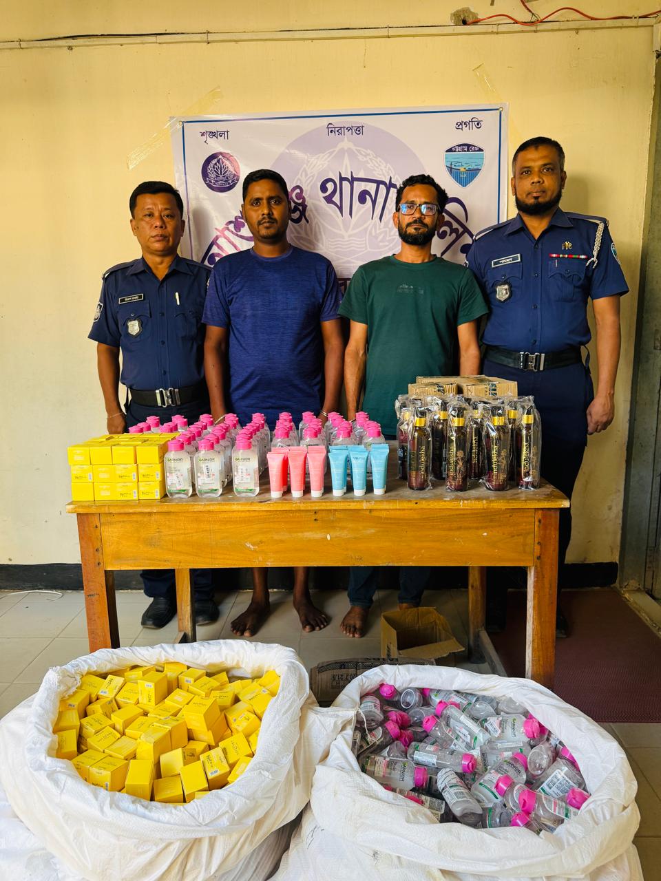 আশুগঞ্জ থানার অফিসার ইনচার্জ (ওসি) মো. খায়রুল আলম জানান, গোপন সংবাদেও ভিত্তিতে মঙ্গলবার সকালে সোনারামপুর ব্রীজের কাছে একটি মাইক্রোবাসে তল্লাশি চালানো হয়। পরে মাইক্রোবাস থেকে ৬০০ পিস বিদেশী মেকআপ রিমোভার, ২৫৫ পিস ফেইস ওয়াশ, ২৬৫ পিস স্কিন কেয়ার ক্রিম, ২৪ বোতল শ্যাম্পু উদ্ধার এবং দুই যুবককে গ্রেপ্তার ও মাইক্রোবাটি জব্দ করা হয়। তিনি বলেন, উদ্ধারকৃত প্রসাধনীর আনুমানিক মূল্য প্রায় সাত লাখ টাকা। এ ঘটনায় আশুগঞ্জ থানায় মামলা দায়ের করা হয়েছে।
