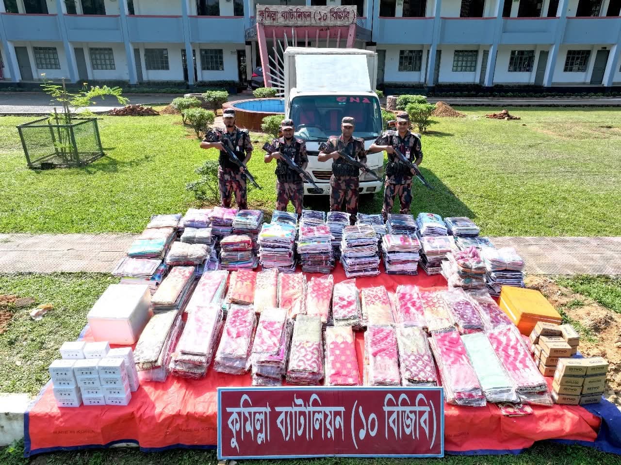 বিজিবি- ৬০ ব্যাটালিয়নের অধিনায়ক লে. কর্ণেল মো. জিয়াউর রহমান জানান, ব্রাহ্মণবাড়িয়া জেলার কসবা উপজেলা এবং কুমিল্লা জেলার ব্রাক্ষণপাড়ার সীমান্তবর্তী এলাকায় বিশেষ অভিযান পরিচালনা করা হয়। এ সময় দুই কোটি ১১ লাখ পাঁচ হাজার টাকা মূল্যের ভারতীয় উন্নতমানের শাড়ি এবং পিকআপসহ বাসমতি চাউল জব্দ করা হয়।