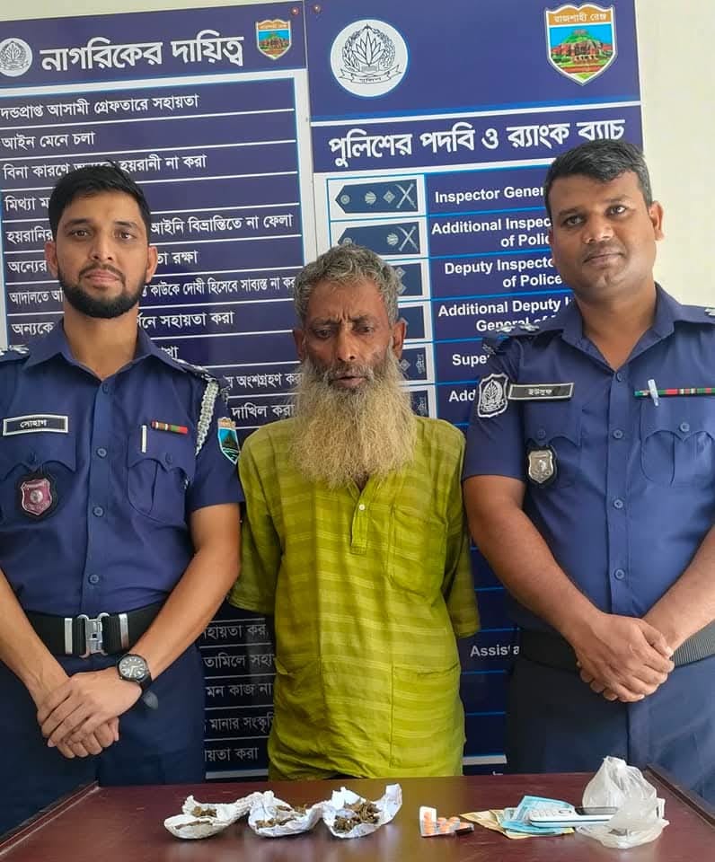 সাব-ইন্সপেক্টর মোঃ ইউসুফ আলীর নেতৃত্বে একটি অপারেশনাল টিম নাড়ুয়ামালা এলাকায় অভিযান চালিয়ে নাড়ুমলা থেকে শুকানপুকুরগামী ব্রিজের উপর থেকে মো. জহুরুল ইসলাম (৫০), পিতা- মৃত নফিজ উদ্দিন, গ্রাম- প্রথমারছেও, গাবতলী, বগুড়াকে গ্রেপ্তার করে।