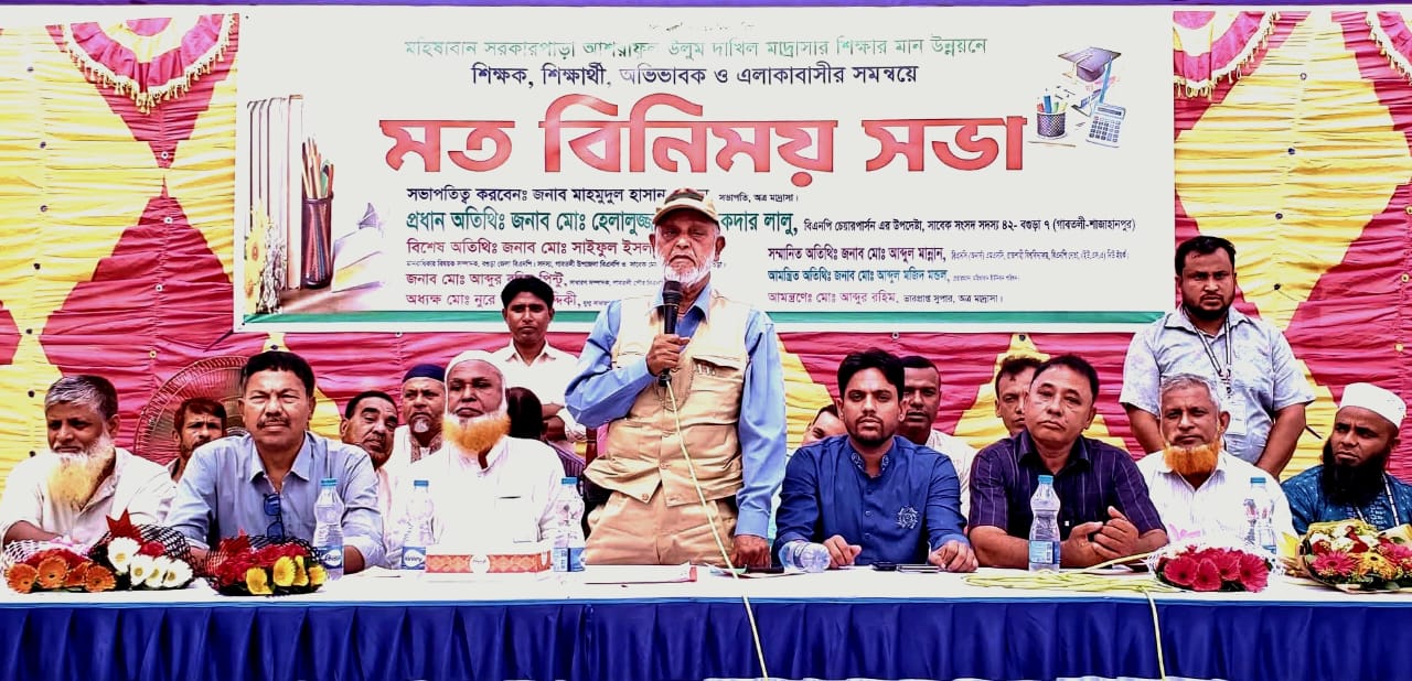 মতবিনিময় সভায় উপস্থিতি মাদ্রাসার সভাপতি ছাত্রনেতা মাহমুদুল হাসান মোহনের সভাপতিত্বে অনুষ্ঠিত এই সভায় বিশেষ অতিথির বক্তব্য রাখেন বগুড়া জেলা বিএনপির মানবাধিকার বিষয়ক সম্পাদক মো. সাইফুল ইসলাম, গাবতলী পৌর বিএনপি সাধারণ সম্পাদক আব্দুর রহিম পিন্টু এবং জিয়া পরিষদ বগুড়া জেলা শাখার যুগ্ম সাধারণ সম্পাদক অধ্যক্ষ নূরে আলম সিদ্দিকী।