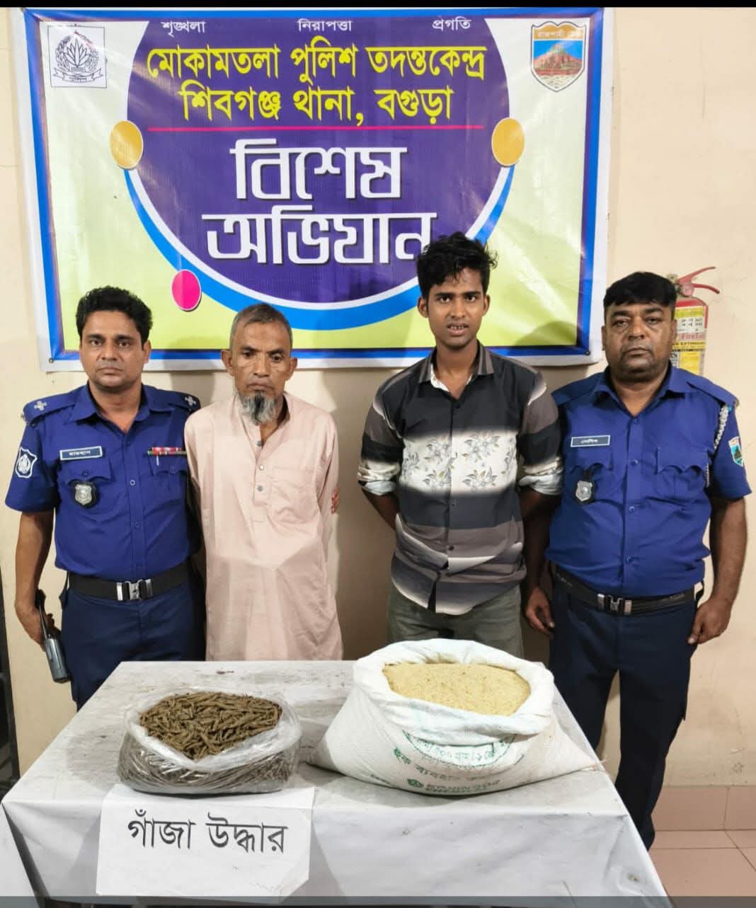 বগুড়া জেলার শিবগঞ্জ থানাধীন মোকামতলা পুলিশ তদন্ত কেন্দ্র এক সফল মাদকবিরোধী অভিযানে ২ কেজি মাদকদ্রব্য গাঁজাসহ দুই ব্যক্তিকে গ্রেফতার করেছে। গ্রেফতারকৃত ব্যক্তিরা হলেন কুড়িগ্রাম জেলার বাসিন্দা।