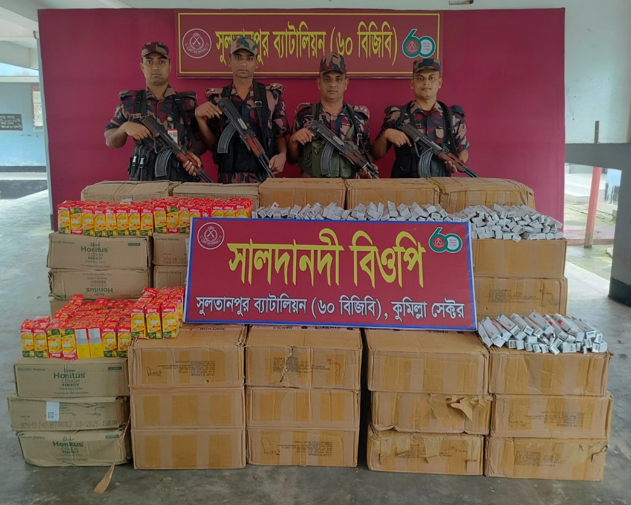 কুমিল্লা ও ব্রাহ্মণবাড়িয়া জেলার বিভিন্ন সীমান্ত এলাকা থেকে কোটি টাকার ভারতীয় পণ্য জব্দ করেছে বিজিবি। রবিবার রাতে কুমিল্লার আদর্শ সদর ও ব্রাহ্মণপাড়া এবং ব্রাহ্মণবাড়িয়ার কসবা উপজেলার বিভিন্ন সীমান্ত থেকে এসব পণ্য জব্দ করা হয়।