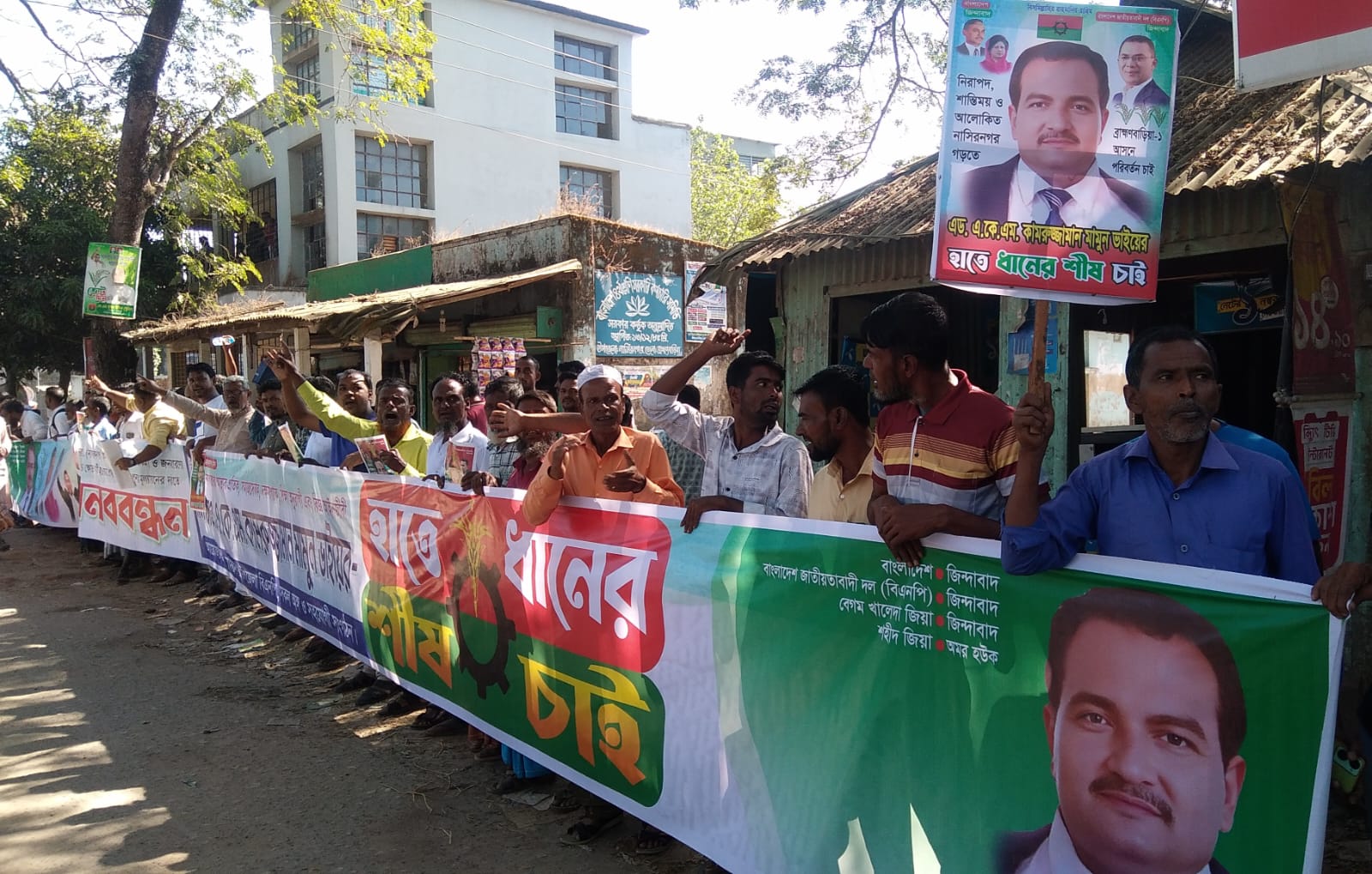 বিএনপি'র প্রার্থী বদলের দাবিতে ব্রাহ্মণবাড়িয়ার নাসিরনগরের তিনস্থানে বুধবার মানববন্ধন অনুষ্ঠিত হয়েছে। বুধবার, ১৯ নভেম্বর সকাল ১০টা থেকে দুপুর নাগাদ উপজেলা সদর, ফান্দাউক ও কুণ্ডা এলাকায় এসব মানববন্ধন অনুষ্ঠিত হয়ব্রাহ্মণবাড়িয়া- ১ (নাসিরনগর) আসন থেকে উপজেলা বিএনপির সভাপতি এম এ হান্নানকে দল থেকে প্রাথমিক মনোনয়ন দেওয়া হয়েছে। মানববন্ধন থেকে প্রার্থী বদল করে ব্রাহ্মণবাড়িয়া আইনজীবী সমিতির সভাপতি অ্যাডভোকেট কামরুজ্জামান মামুনকে মনোনয়ন দেওয়ার দাবি জানানো হয়উপজেলা সদরে মানববন্ধনে অংশ নেওয়া রেজিয়া বেগম বলেন, 'কামরুজ্জামান মামুন দলের জন্য নিবেদিত প্রাণ। তিনি সাধারন মানুষের নেতা। বিএনপি থেকে তাকে মনোনয়ন দেওয়ার দাবিতে আমরা এক হয়েছিছোয়াব রেজা বলেন, 'বিএনপি'র যোগ্য প্রার্থী মামুন ভাই। আমরা তাকে এমপি হিসেবে দেখতে চাই। এজন্য দলের মনোনয়ন বদলের দাবি জানাচ্ছিকামরুজ্জামান মামুন বলেন, 'যাকে মনোনয়ন দেওয়া হয়েছে তিনি ইউনিয়ন পরিষদ নির্বাচনেও ফেল করেছেন। যে কারণে এখানকার মানুষ প্রার্থী বদলের দাবি জানিয়ে প্রতিনিয়তই কর্মসূচি পালন করছেএম এ হান্নান বলেন, 'তৃণমূলে রাজনীতি করেও যে এমপি মনোনয়ন পাওয়া যায় সেটা বিএনপি'র হাইকমাণ্ড প্রমাণ করেছে। আশা করি প্রথমবারের মতো আসনটি বিএনপিকে উপহার দিতে পারবো।'