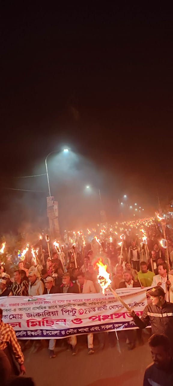 পাবনা জেলার ঈশ্বরদী আলহাজ্ব মোড়ে ২৪ নভেম্বর সন্ধ্যা ৬ টাই ঈশ্বরদী উপজেলার বিভিন্ন ইউনিয়ন এবং পৌর বিভিন্ন ওয়ার্ডের নেতা এবং নেতৃবৃন্দ সহআটঘরিয়া থানার সাবেক চেয়ারম্যান ফারুক আহমেদ খান এর নেতৃত্বে, বিভিন্ন ইউনিয়ন ও পৌর ওয়ার্ড ভিত্তিক নেত্রীগুলোর ঢল নামে। তার সাথে উপস্থিত ছিল দুই থানার সাধারণ জনগণআলহাজ্ব থেকে শুরু করে মূল সড়ক প্রদক্ষিণ করে পোস্ট অফিসের মোড় হয়ে সোজা ঈশ্বরদী রেল গেট সংলগ্ন বাস টার্মিনালে যে জনসভা অনুষ্ঠিত হয়।