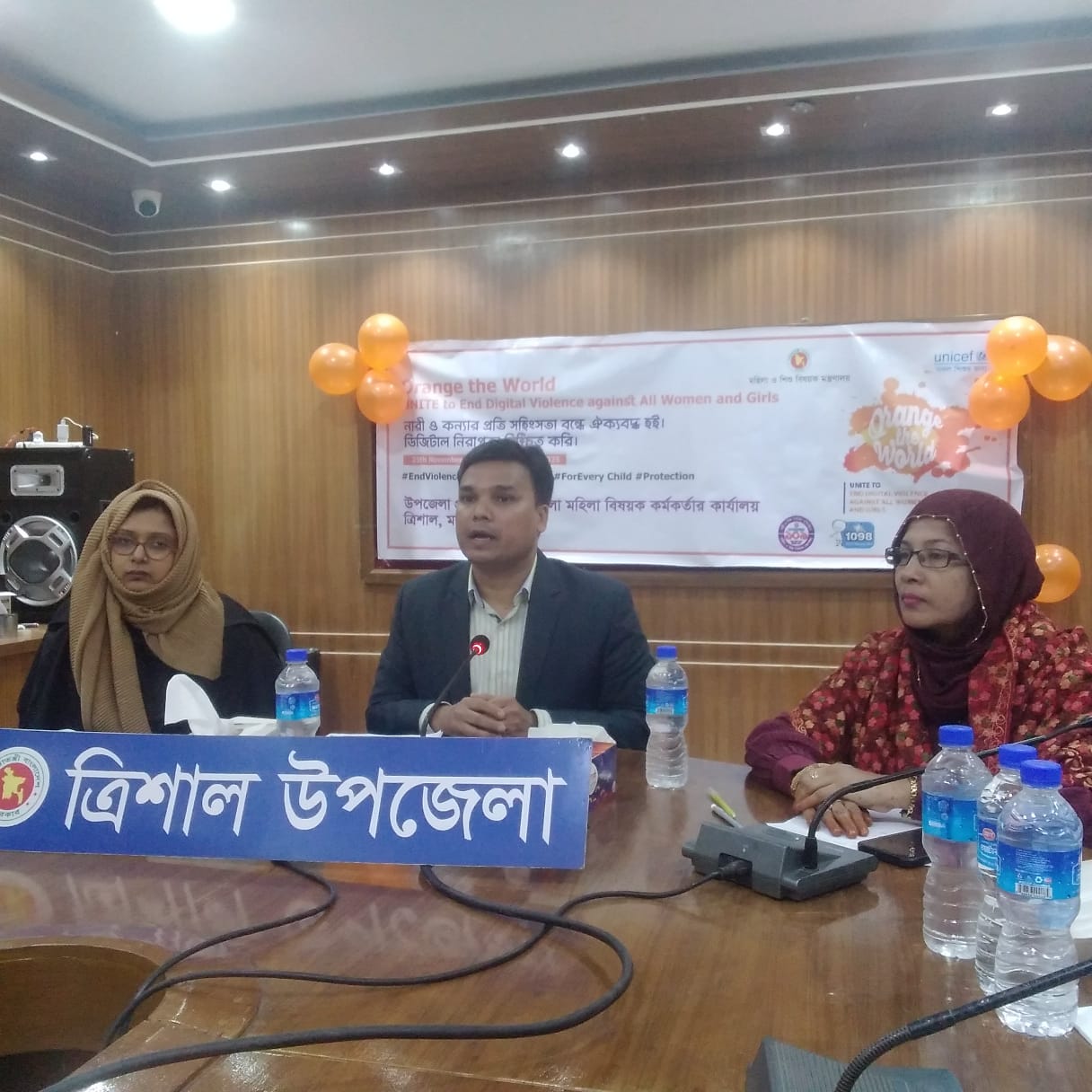 ময়মনসিংহের ত্রিশাল উপজেলা পরিষদ হলরুমে আজ মঙ্গলবার ইউনিসেফের অর্থায়নে এবং মহিলা বিষয়ক মন্ত্রণালয়ের বাস্তবায়নে “নারী ও কন্যার প্রতি সহিংসতা বন্ধে ঐক্যবদ্ধ হই, ডিজিটাল নিরাপত্তা নিশ্চিত করি” শীর্ষক এক মতবিনিময় সভা অনুষ্ঠিত হয়েছে।