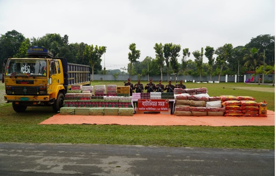 সরাইল ২৫ বিজিবি ব্যাটালিয়ন থেকে পাঠানো এক প্রেস বিজ্ঞপ্তিতে জানানো হয়, গোপন সংবাদের ভিত্তিতে একটি টহল দল ঢাকা- সিলেট মহাসড়কের অভিযান পরিচালনা করা হয়। এ সময় একটি পাথরবাহী ট্রাককে সন্দেহ করে থামানোর চেষ্টা করা হলে ট্রাকটি অন্য পথে পালিয়ে যাওয়া চেষ্টা করে। পরে ট্রাকটিকে ধাওয়া করে ইব্রাহিমপুর এলাকা থেকে আটক করা হয়। তবে ট্রাকে থাকা চোরা কারবারিরা পালিয়ে যায়। পরে ট্রাকে থাকা পাথরের অন্তত চারফুট নিচ থেকে ভারতীয় উন্নতমানের শাড়ি ৩৬৯ পিস, উন্নতমানের লেহেঙ্গা ৮৩ পিস, জিরা ৫৭০ কেজি, কসমেটিকস সামগ্রী- ১৭ হাজার ৯৫২ পিস জব্দ করা হয়। এসব অবৈধ চোরাচালানী মালামালের আনুমালিক মূল্য এক কোটি ৮৯ লাখ ছয় হাজার ৮০০ টাকা।