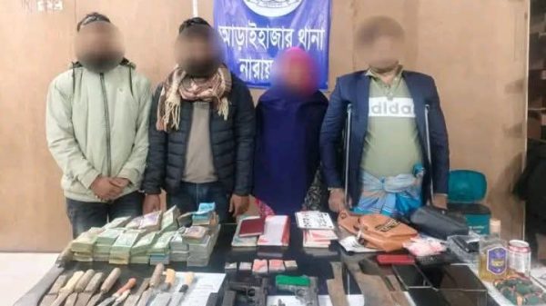 সেনাবাহিনীর যৌথ অভিযানে নারায়ণগঞ্জের মুন্সীপুর এলাকা থেকে অস্ত্র ও মাদকদ্রব্য উদ্ধার: গ্রেফতার ৪