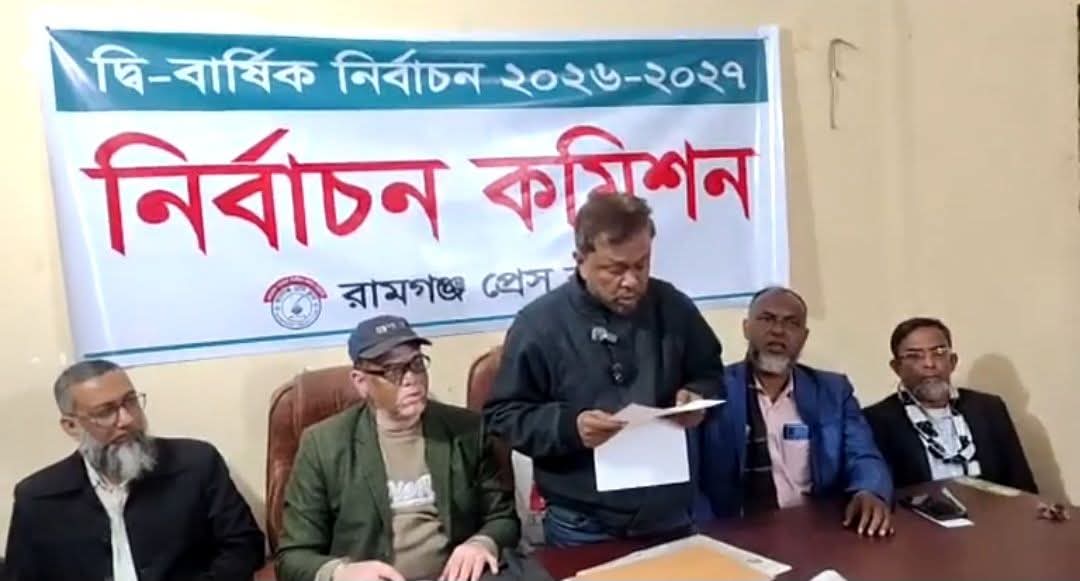 লক্ষ্মীপুরের রামগঞ্জ প্রেসক্লাবের দ্বি-বার্ষিক নির্বাচন-২০২৬-২৭ তফসিল ঘোষণা করা হয়েছে। সোমবার বিকেল রামগঞ্জ প্রেসক্লাব কার্যালয়ে এ তফসিল ঘোষনা করেন প্রেসক্লাব নির্বাচন পরিচালনায় দায়িত্বপ্রাপ্ত প্রধান নির্বাচন কমিশনার ও রামগঞ্জ মডেল ডিগ্রি কলেজের সহকারি অধ্যাপক মোঃ দেলোয়ার হোসেন। সহকারি নির্বাচন কমিশনার ও প্রেসক্লাবের সাবেক সভাপতি রহমত উল্যাহ পাটোয়ারী সঞ্চালনায় তফসিল ঘোষনা অনুষ্ঠানে উপস্থিত ছিলেন, সহকারি নির্বাচন কমিশনার ও সাবেক প্রেসক্লাবের সভাপতি এস এম বাবুল(বাবর), সাবেক সাধারন সম্পাদক এ কে এম মিজানুর রহমান মুকুল, সাবেক সভাপতি সাখাওয়াত হোসেন জাহাঙ্গীর,সাবেক সহ সভাপতি মনির হোসেন বাবুল।ঘোষিত তফসিল অনুযায়ী আগমী ২৪ জানুয়ারি শনিবার এ নির্বাচন অনুষ্ঠিত হবে। ১৩ জানুয়ারি থেকে ১৫ জানুয়ারি মনোয়নপত্র সংগ্রহ জমা দেওয়ার তারিখ নির্ধারন করা হয়।