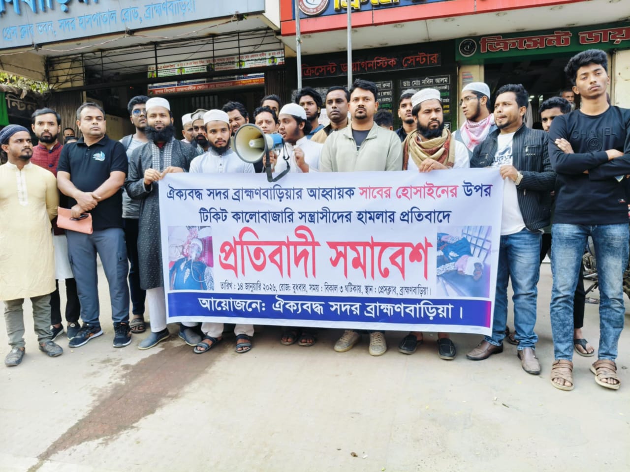 সমাবেশে বক্তারা বলেন, ‘রেলওয়ে স্টেশনে টিকিট বিক্রিতে দীর্ঘদিন ধরে চলা অনিয়ম ও কালোবাজারি বন্ধে প্রশাসনের পক্ষ থেকে কার্যকরি কোনো পদক্ষেপ নেওয়া হচ্ছে না। টিকিট কালোবাজারিদের বিরুদ্ধে প্রতিবাদ করায় ঐক্যবদ্ধ সদর ব্রাহ্মণবাড়িয়া এর আহবায়ক সাবের হোসাইনের উপর টিকিট কালোবাজারিরা হামলা করেন। সমাবেশ থেকে হামলার ঘটনায় জড়িতদেও দ্রুত গ্রেপ্তার ও দৃষ্টান্তমূলক শাস্তির দাবি করা হয়।’