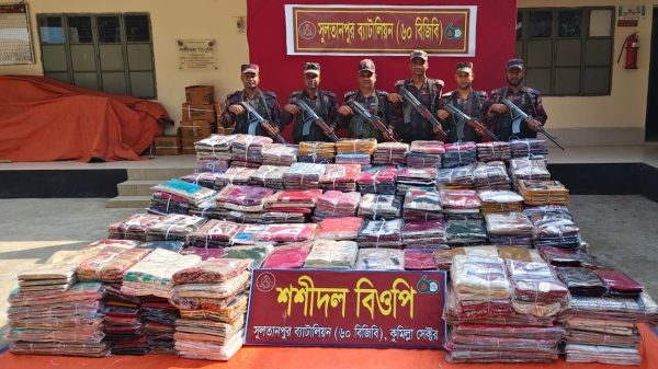 বাদল আহাম্মদ খান নিজস্ব প্রতিবেদক ব্রাহ্মণবাড়িয়ার কসবা উপজেলা সীমান্তে বর্ডার গার্ড বাংলাদেশ (বিজিবি) এর অভিযানে ৯২ লাখ টাকার ভারতীয় শাড়ি জব্দ হয়েছে। শনিবার সকালে উপজেলা কুইয়াপানিয়া এলাকা থেকে এসব ...বিস্তারিত পড়ুন