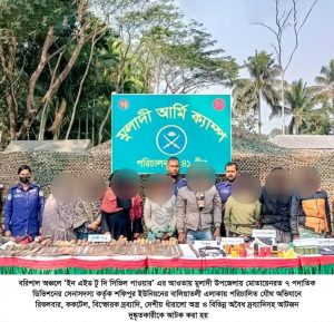 বরিশালের মুলাদিতে সেনাবাহিনীর যৌথ অভিযানে অবৈধ অস্ত্র ও বিস্ফোরক উদ্ধার