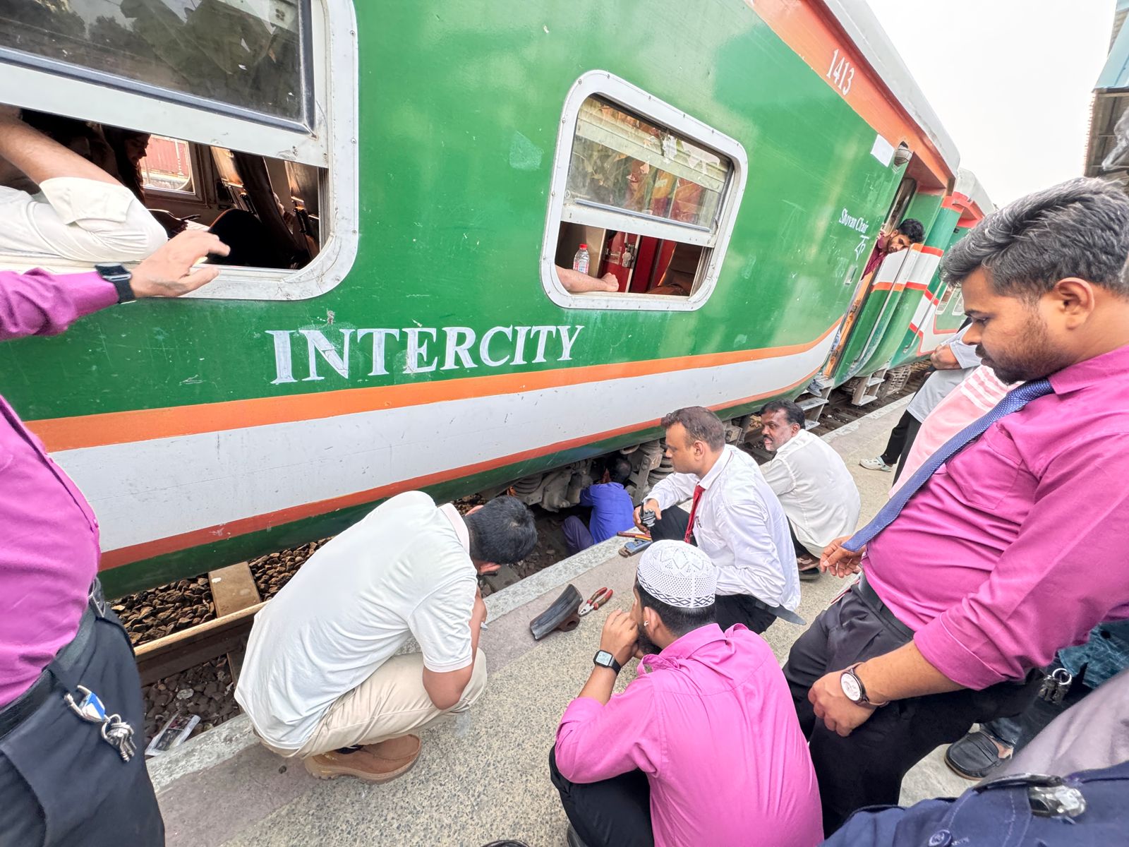 ট্রেনের পরিচালক (গার্ড) জানান, কসবা ছাড়ার পর মনে হচ্ছিলো বড় রকম কোনো সমস্যা। আখাউড়া এসে সংশ্লিষ্টদেরকে বিষয়টি জানানো হয়। তারা এসে দেখতে পান একটি যন্ত্র গলে গিয়ে চাকায় আটকে আছে।