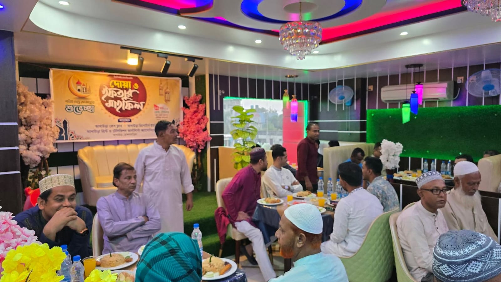 ব্রাহ্মণবাড়িয়ার আখাউড়ায় সাংবাদিক সংগঠনের আয়োজনে ইফতার ও দোয়া মাহফিল যেন মিলন মেলায় রূপ নেয়। একসঙ্গে বসে ইফতার করেন সরকারি কর্মকর্তা থেকে শুরু করে বিভিন্ন শ্রেণি-পেশার মানুষ ও সম্ভাব্য মেয়র প্রার্থীরা। এ সময় দেশ ও জাতির সমৃদ্ধি কামনা করা হয়।