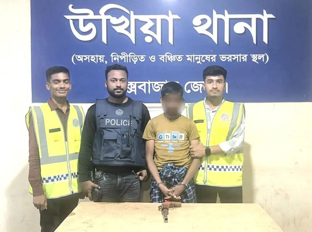 কক্সবাজারের টেকনাফ উপজেলার পালংখালী ইউনিয়নের মুছারখোলা স্টেশন এলাকায় অভিযান চালিয়ে একটি দেশীয় তৈরি আগ্নেয়াস্ত্র উদ্ধার করেছে পুলিশ। এসময় মোঃ নাসির (১৭) নামের এক কিশোরকে আটক করা হয়।