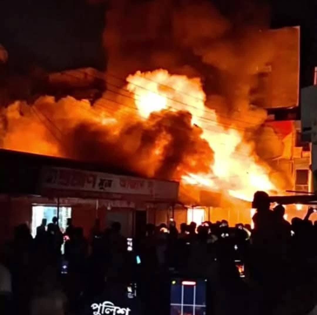 স্থানীয় প্রত্যক্ষদর্শীরা জানান, হঠাৎ করেই আগুনের সূত্রপাত হয় এবং মুহূর্তের মধ্যেই তা আশপাশের দোকান ও স্থাপনায় ছড়িয়ে পড়ে। আগুনের তীব্রতা বৃদ্ধি পাওয়ায় ক্ষয়ক্ষতির পরিমাণ আরও বাড়ার আশঙ্কা করা হচ্ছে।