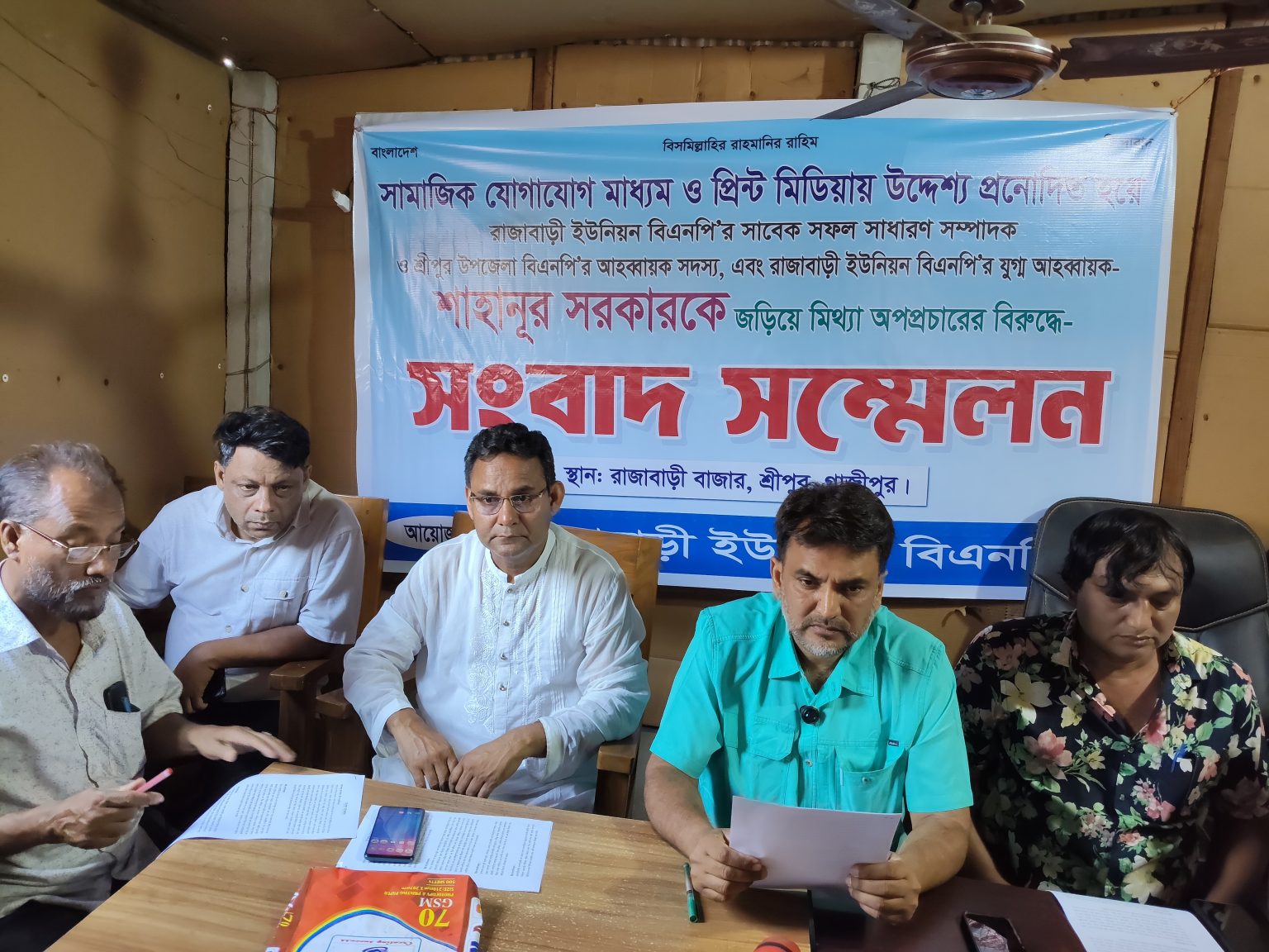 শ্রীপুর বাজার ইজারা দেওয়াকে বেন্দ্র করে বিএনপি নেতাকে নিয়ে সামাজিক যোগাযোগ মাধ্যম ফেসবুকে অপপ্রচার ও বিভ্রান্তিমূলক তথ্য ছড়িয়ে রাজাবাড়ী ইউনিয়ন বিএনপির ভাবমূর্তি ও সুনাম নষ্ট করার চক্রান্তের প্রতিবাদে সংবাদ সম্মেলন করেছে রাজাবাড়ী ইউনিয়ন বিএনপি।শনিবার (১১ এপ্রিল) বিকেল ৫টায় উপজেলার রাজাবাড়ী ইউনিয়নের রাজাবাড়ী বাজার ব্যবসায়ী পরিচালনা কমিটির কার্যালয়ে রাজাবাড়ী ইউনিয়ন বিএনপির যুগ্ন আহবায়ক শাহানুর সরকার সংবাদ সম্মেলনে লিখিত বক্তব্য অপপ্রচার ও চক্রান্তের প্রতিবাদ জানান।সংবাদ সম্মেলনে উপস্থিত ছিলেন রাজাবাড়ী ইউনিয়ন বিএনপির আহবায়ক নাজমুল হুদা শাহীন, সিনিয়র যুগ্ন আহবায়ক মহিদুল ইসলাম নয়ন, যুগ্ন আহবায়ক সরদার আকতার হোসেন, সাবেক বিএনপি নেতা অ্যাডভোকেট জুয়েল রানা, শ্রীপুর উপজেলা যুবদলের আহবায়ক কমিটির সদস্য ইঞ্জিানয়ার শাঞ আলম, যুবদল নেতা মাজহারুল ইসলাম, মঞ্জুরুল হকসহ বাজারের ব্যবসায়ী নেতৃবৃন্দ এবং বিএিনপির অঙ্গ ও সহযোগী সংগঠনের নেতাকর্মীরা।সংবাদ সম্মেলনে লিখিত বক্তব্যে রাজাবাড়ী ইউনিয়ন বিএনপির যুগ্ন আহবায়ক শাহানুর সরকার বলেন, উপজেলা প্রশাসন হাট-বাজার ইজারা প্রদানের জন্য দরপত্র আহবান করে। সর্বোচ্চ দরদাতা হিসেবে আমার বড় সারোয়ার জাহান (সেমু সরকার) রাজাবাড়ী বাজার ইজারা পায়। সর্বোচ্চ দরদাতা হিসেবে আমার বড় ভাই বাজারের ইজারা পেলেও কোনো ধরনের রাজনৈতিক প্রভাব খাটানো হয়নি। আগামী ১ বৈশাখ উপজেলা প্রশাসন থেকে সেমু সরকারকে বাজারের ইজারার সকল দায়িত্ব বুঝিয়ে দেওয়া হবে।সংবাদ সম্মেলনে তিনি দাবী করেন বাজার ইজারার নিয়ে ফ্যাসিস্ট আওয়ামী সরকারের কিছু নেতাকর্মীর মদদে সজীব আহমেদ নামে এক গণমাধ্যম পরিচায়দানকারী বিভিন্ন গণমাধ্যমে সাজানো ও মিথ্যা তথ্য সংবাদ প্রচার করছে। ওইসব সংবাদ সে তার ‘সজীব আহমেদ’ ফেসবুক থেকে পোস্ট দিয়ে তাকে সামাজিক ও রাজনৈতিকভাবে মানহানি করছে। আদৌ আমি বাজার ইজারার বিষয়ে কোনো কিছু জানি না এবং জড়িত নই। উপজেলা প্রশাসন সম্পূর্ণ নিয়মনীতি মেনে সর্বোচ্চ দর দাতাকে রাজাবাড়ী বাজার ইজারা দিয়েছেতিনি আরো বলেন, আমি দীর্ঘদিন রাজাবাড়ী ইউনিয়ন বিএনপির সাধারণ সম্পাদকের দায়িত্ব পালন করেছি। বর্তমানে শ্রীপুর উপজেলা বিএনপির সদস্য ও রাজাবাড়ী ইউনিয়ন বিএনপির যুগ্ম আহ্বায়ক হিসেবে দায়িত্ব পালন করছি। আমার বাবা প্রয়াত সরাফত আলী সরকার দীর্ঘদিন রাজাবাড়ী ইউনিয়নের জনগণের ভোটে নির্বাচিত চেয়ারম্যান ছিলেন। আগামী স্থানীয় সরকার নির্বাচনে আমি এ ইউনিয়ন থেকে চেয়ারম্যান প্রার্থী। আমার রাজনৈতিক প্রতিপক্ষ আমার জনপ্রিয়তায় ঈর্ষান্বিত হয়ে সামাজিক ও রাজনৈতিভাবে ভাবে আমাকে সুনাম ও ভাবমূর