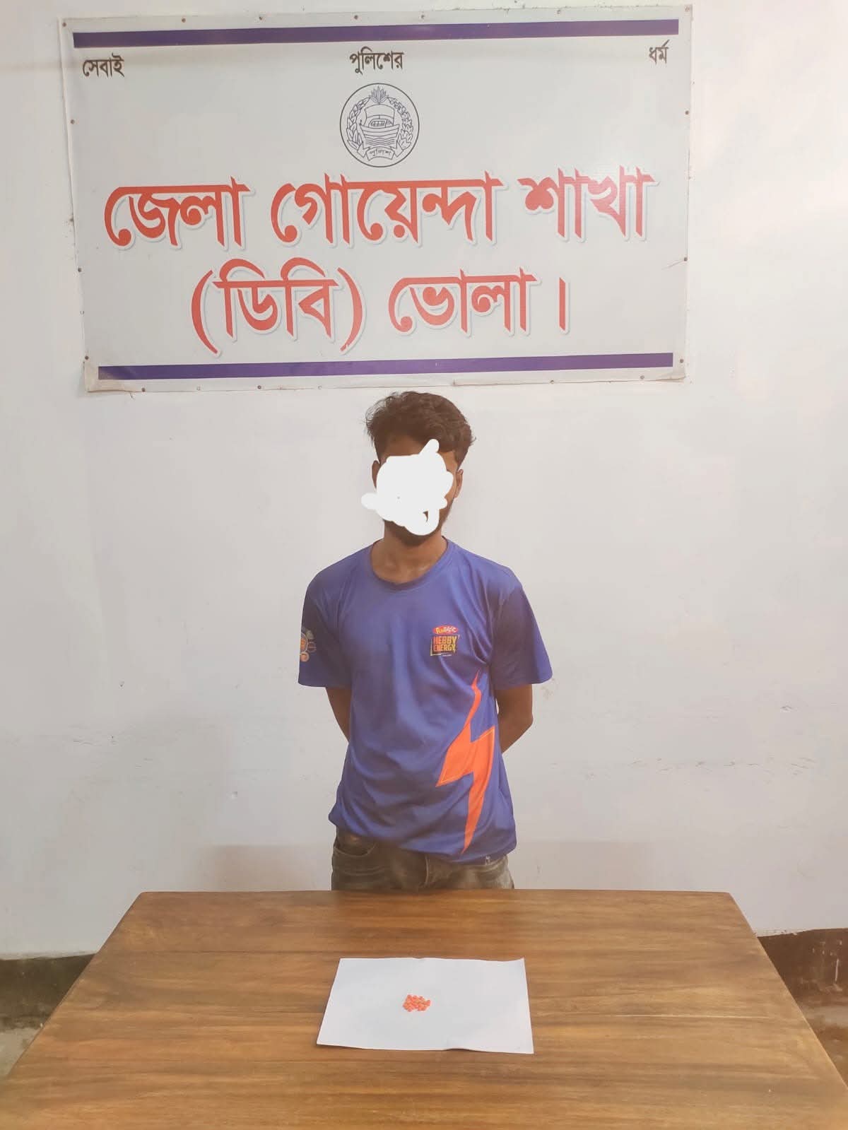ভোলা জেলার পুলিশ সুপার জনাব মোঃ শহিদুল্লাহ কাওছার, পিপিএম (বার) স্যারের দিকনির্দেশনায়, অফিসার ইনচার্জ, জেলা গোয়েন্দা শাখা, ভোলার তত্বাবধায়নে, ভোলা সদর থানাধীন চরসামাইয়া ইউনিয়নের ৩নং ওয়ার্ডস্থ চরছিফলী গ্রামের মুছার বাহের পুল সংলগ্ন এরশাদ সুফি হাবিবুর রহমান পারিবারিক করবস্থানের সামনে পাকা রাস্তার উপর থেকে ৩০ (ত্রিশ) পিচ অবৈধ মাদকদ্রব্য ইয়াবা ট্যাবলেটসহ ০১ জন মাদক ব্যবসায়ীকে আটক করেছে ভোলা ডিবি পুলিশের একটি চৌকস গোয়েন্দা শাখা (ডিবি) ভোলার এসআই (নিঃ)/মাহমুদুল হাসান বাপ্পী সংঙ্গীয় অফিসার ও ফোর্সসহ মাদক উদ্ধার অভিযান পরিচালনা করিয়া ভোলা সদর থানাধীন চরসামাইয়া ইউনিয়নের ৩নং ওয়ার্ডস্থ চরছিফলী গ্রামের মুছার বাহের পুল সংলগ্ন এরশাদ সুফি হাবিবুর রহমান পারিবারিক করবস্থানের সামনে পাকা রাস্তার উপর থেকে আসামী মোঃ শান্ত (২৩), পিতা-মফিজ, মাতা-নীলু বেগম, সাং-বড় চরসামাইয়া ৫নং ওয়ার্ড, থানা ও জেলা-ভোলাকে ৩০ (ত্রিশ) পিচ অবৈধ মাদকদ্রব্য ইয়াবা ট্যাবলেটসহ গ্রেফতার করা হয়। আসামীর বিরুদ্ধে মাদক মামলা রুজু প্রক্রিয়াধীন