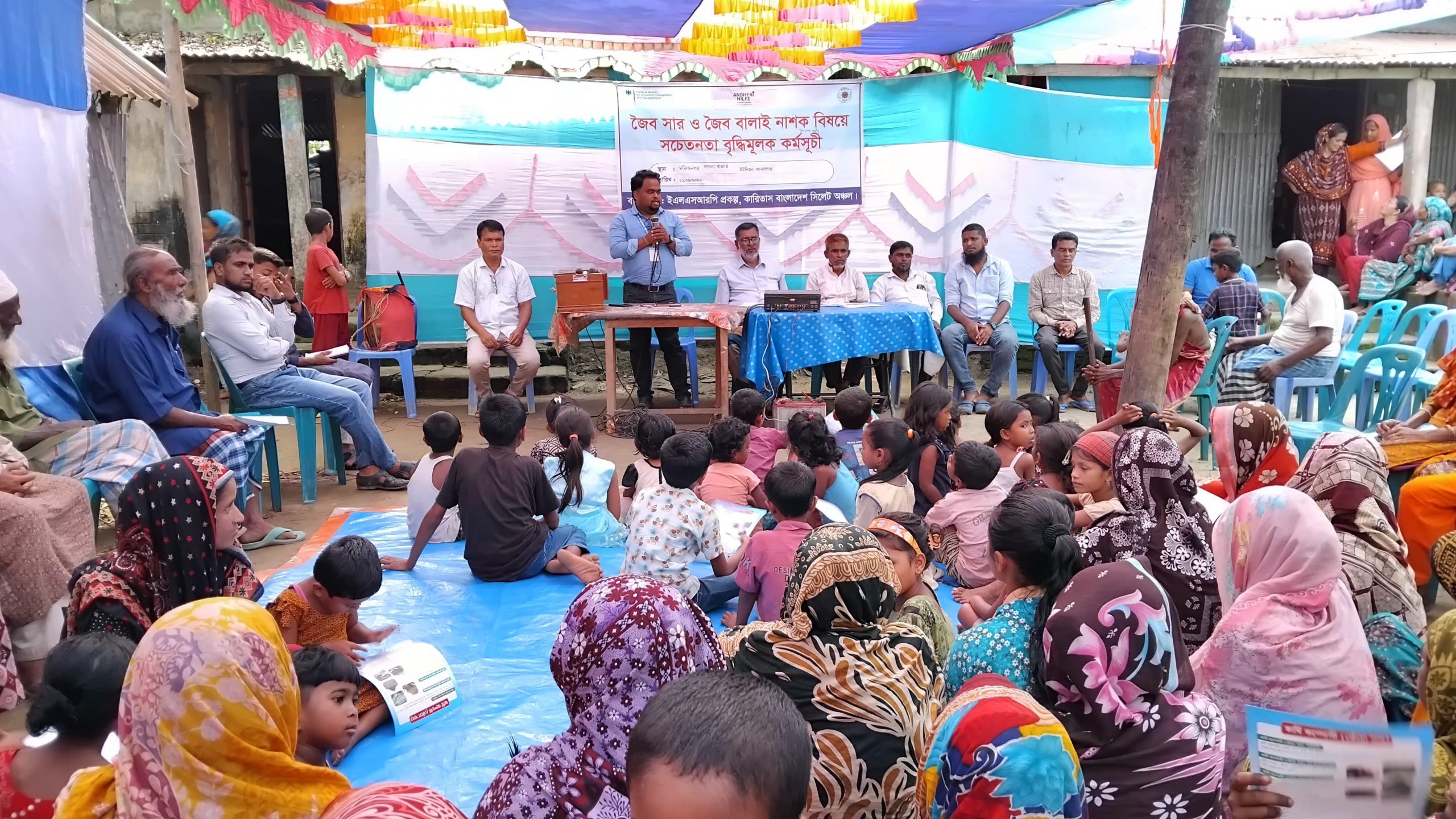 কারিতাস বাংলাদেশ ELSRP প্রকল্পের উদ্যোগে সুনামগঞ্জ জেলার জামালগঞ্জ উপজেলায় জৈব সার ও জৈব বালাই নাশক বিষয়ে সচেতনতা বৃদ্ধিমূলক কর্মসূচি অনুষ্ঠিত হয়েছে। উপজেলার গুলেরহাটি সরৎপুর, কালিপুর ও মফিজ নগর, এই তিনটি গ্রামে পর্যায়ক্রমে আয়োজন করা হয় এই কর্মসূচির, যেখানে স্থানীয় কৃষক, নারী-পুরুষ ও যুব সমাজের সক্রিয় অংশগ্রহণ লক্ষ্য করা যায়অনুষ্ঠানের মূল উদ্দেশ্য ছিল কৃষকদের মাঝে নিরাপদ খাদ্য উৎপাদন, পরিবেশবান্ধব কৃষি পদ্ধতি এবং স্বাস্থ্যসম্মত জীবনযাত্রা সম্পর্কে সচেতনতা বৃদ্ধি করা। দিনব্যাপী এই আয়োজনে জৈব সার তৈরির পদ্ধতি, এর উপকারিতা এবং জৈব বালাই নাশকের ব্যবহার সম্পর্কে বিস্তারিত আলোচনা করা হয়। কীভাবে ঘরের আশেপাশে থাকা প্রাকৃতিক উপাদান ব্যবহার করে কম খরচে জৈব সার তৈরি করা যায় এবং তা ফসলের উৎপাদন বৃদ্ধিতে সহায়ক ভূমিকা রাখে। অনুষ্ঠানের একটি আকর্ষণীয় অংশ ছিল জৈব সার উৎপাদন ও পুষ্টি বিষয়ক একটি সচেতনতামূলক গান। গানটির মাধ্যমে কৃষকদের কাছে সহজ ও বিনোদনমূলক উপায়ে গুরুত্বপূর্ণ বার্তা পৌঁছে দেওয়া হয়। স্থানীয় শিল্পীদের পরিবেশনায় গানটি উপস্থিত দর্শকদের মাঝে ব্যাপক সাড়া ফেলে এবং তারা আনন্দের সাথে তা উপভোগ করেনএছাড়াও স্বাস্থ্য ও স্যানিটেশন বিষয়ক একটি শিক্ষামূলক নাটক মঞ্চস্থ করা হয়। নাটকটির মাধ্যমে গ্রামীণ জীবনে স্বাস্থ্যবিধি মেনে চলার গুরুত্ব, নিরাপদ পানি ব্যবহার, সঠিক পায়খানা ব্যবস্থাপনা এবং পরিচ্ছন্নতা বজায় রাখার বিষয়ে সচেতনতা তৈরি করা হয়। নাটকের চরিত্র ও সংলাপগুলো এতটাই বাস্তবধর্মী ছিল যে দর্শকরা সহজেই নিজেদের জীবনের সঙ্গে মিল খুঁজে পান এবং বার্তাগুলো হৃদয়ে ধারণ করেনঅনুষ্ঠানে প্রধান অতিথি হিসেবে উপস্থিত ছিলেন জামালগঞ্জ উপজেলার ELSRP প্রকল্পের জুনিয়র কর্মসূচি কর্মকর্তা মিঃ স্বপন নায়েক। তিনি তার বক্তব্যে বলেন, কৃষি ও সুস্থ সমাজ গঠনে জৈব পদ্ধতির বিকল্প নেই। আমাদের সকলকে সচেতন হয়ে পরিবেশবান্ধব চর্চায় এগিয়ে আসতে হবে। তিনি আরও উল্লেখ করেন, কারিতাস বাংলাদেশ সবসময় মানুষের কল্যাণে কাজ করে যাচ্ছে এবং ভবিষ্যতেও এ ধরনের উদ্যোগ অব্যাহত থাকবে। সভায় সভাপতিত্ব করেন ৪নং সাচনা ইউনিয়নের সাবেক মেম্বার কবির হোসেন। তিনি তার বক্তব্যে এই উদ্যোগকে সময়োপযোগী ও অত্যন্ত কার্যকর হিসেবে উল্লেখ করেন এবং স্থানীয় জনগণকে এসব কার্যক্রম থেকে প্রাপ্ত জ্ঞান বাস্তবে প্রয়োগ করার আহ্বান জানানঅনুষ্ঠানটি সঞ্চালনা করেন মাঠ সহায়ক অশ্বিনী কুমার রায়, এছাড়াও সহযোগিতায় ছিলেন মাঠ সহায়ক জামিল হোসেন, রাকিব হাসান, আমীর হোসেন হৃদয়, উপেন্দ্র নাথ রায়, সমরাজ মিয়া এবং নিশা রানী দাস। তাদের সম্মিলিত প্রচেষ্টায় কর্মসূচিটি সফলভাবে সম্