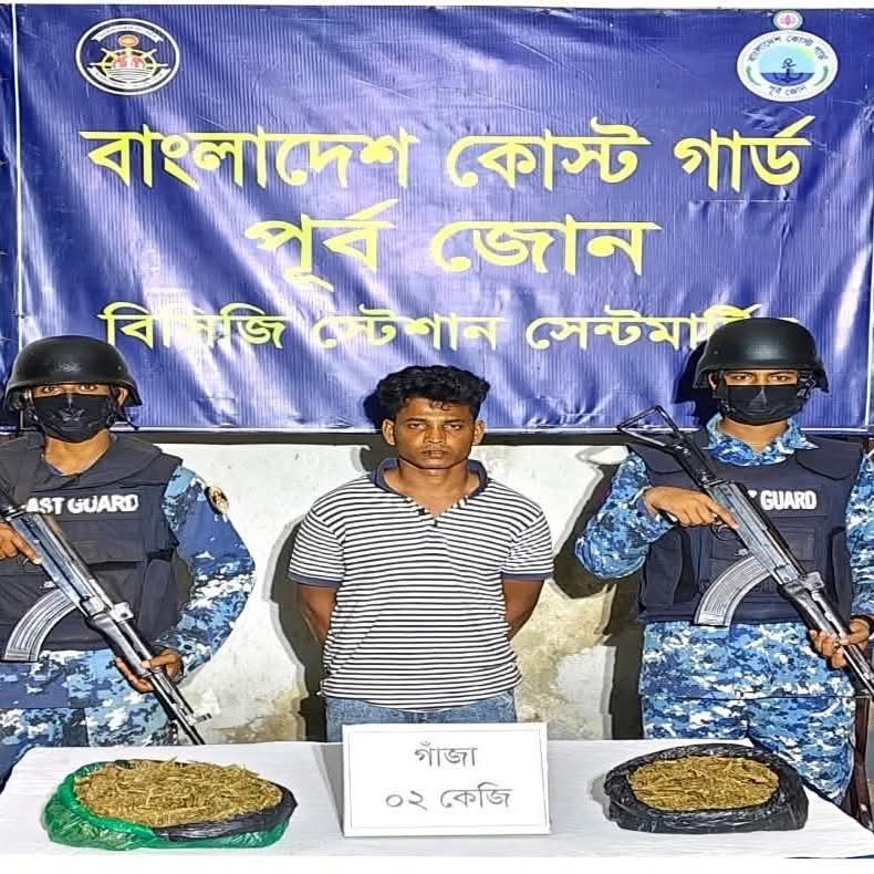 কক্সবাজারের সেন্টমার্টিন এবং চট্টগ্রাম-এ কোস্ট গার্ডের পৃথক দুইটি অভিযানে বিপুল পরিমাণ মাদকদ্রব্য জব্দ ও এক মাদক কারবারিকে আটক করা হয়েছে।রবিবার (২৬ এপ্রিল ২০২৬) বিকালে কোস্ট গার্ড মিডিয়া কর্মকর্তা লেফটেন্যান্ট কমান্ডার সাব্বির আলম সুজন এ তথ্য নিশ্চিত করেনতিনি জানান, গত শনিবার (২৫ এপ্রিল) সন্ধ্যা ৬টার দিকে সেন্টমার্টিনের জেটি ঘাট সংলগ্ন এলাকায় কোস্ট গার্ড স্টেশন সেন্টমার্টিন গোপন সংবাদের ভিত্তিতে একটি বিশেষ অভিযান পরিচালনা করে। এ সময় একটি সন্দেহজনক সার্ভিস বোটে তল্লাশি চালিয়ে আনুমানিক ৬০ হাজার টাকা মূল্যের ২ কেজি গাঁজাসহ একজন মাদক কারবারিকে আটক করা হয়।অপরদিকে, রবিবার (২৬ এপ্রিল) ভোর ৪টার দিকে চট্টগ্রামের পতেঙ্গা থানাধীন চাইনিজ ঘাট এলাকায় কোস্ট গার্ড আউটপোস্ট পতেঙ্গা আরেকটি বিশেষ অভিযান পরিচালনা করে। অভিযানে প্রায় ৮৮ লাখ ১৫ হাজার টাকা মূল্যের ২১৫ বোতল বিদেশি মদ (হুইস্কি) জব্দ করা হয়। তবে কোস্ট গার্ডের উপস্থিতি টের পেয়ে সংশ্লিষ্ট পাচারকারীরা পালিয়ে যাওয়ায় কাউকে আটক করা সম্ভব হয়নি।কোস্ট গার্ড সূত্রে জানা যায়, জব্দকৃত গাঁজা ও বিদেশি মদ এবং আটক ব্যক্তির বিরুদ্ধে আইনানুগ ব্যবস্থা গ্রহণের প্রক্রিয়া চলমান রয়েছে।মিডিয়া কর্মকর্তা আরও জানান, মাদকের ভয়াল বিস্তার রোধে এবং তরুণ সমাজকে সুরক্ষিত রাখতে কোস্ট গার্ড ভবিষ্যতেও এ ধরনের অভিযান জোরদারভাবে অব্যাহত রাখবে।