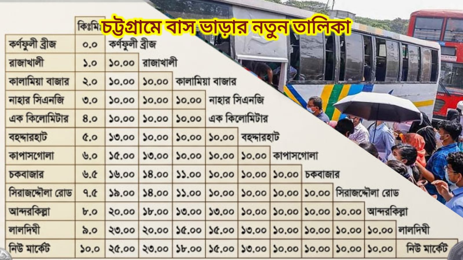 নতুন সিদ্ধান্ত অনুযায়ী, চট্টগ্রাম মহানগরে ৫২ আসনের বাসে প্রতি কিলোমিটার ভাড়া ২ টাকা ৪২ পয়সা থেকে বাড়িয়ে ২ টাকা ৫৩ পয়সা করা হয়েছে। এ হিসাবে কালুরঘাট ব্রিজ থেকে চট্টগ্রাম নিউমার্কেট পর্যন্ত ১৪ কিলোমিটার পথের ভাড়া নির্ধারণ করা হয়েছে ৩৫ টাকা। একইভাবে চকবাজার মসজিদ থেকে নিউমার্কেট পর্যন্ত সর্বনিম্ন ভাড়া রাখা হয়েছে ১০ টাকা। কালুরঘাট ব্রিজ থেকে শরাফত পেট্রলপাম্প পর্যন্ত যেকোনো গন্তব্যেও সর্বনিম্ন ভাড়া ১০ টাকা নির্ধারণ করা হয়েছে।